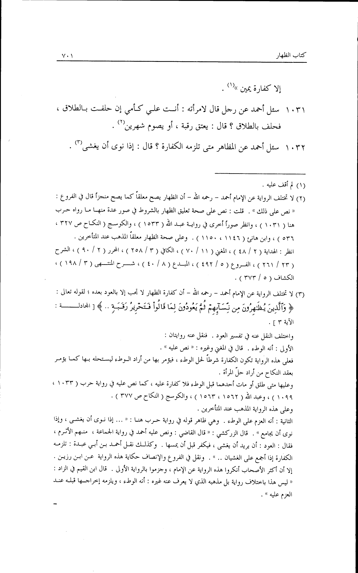 سُئلَ أحمد، عن المظاهر متى تلزمه الكفارة؟ قال: إذا نوى إن يغشى.