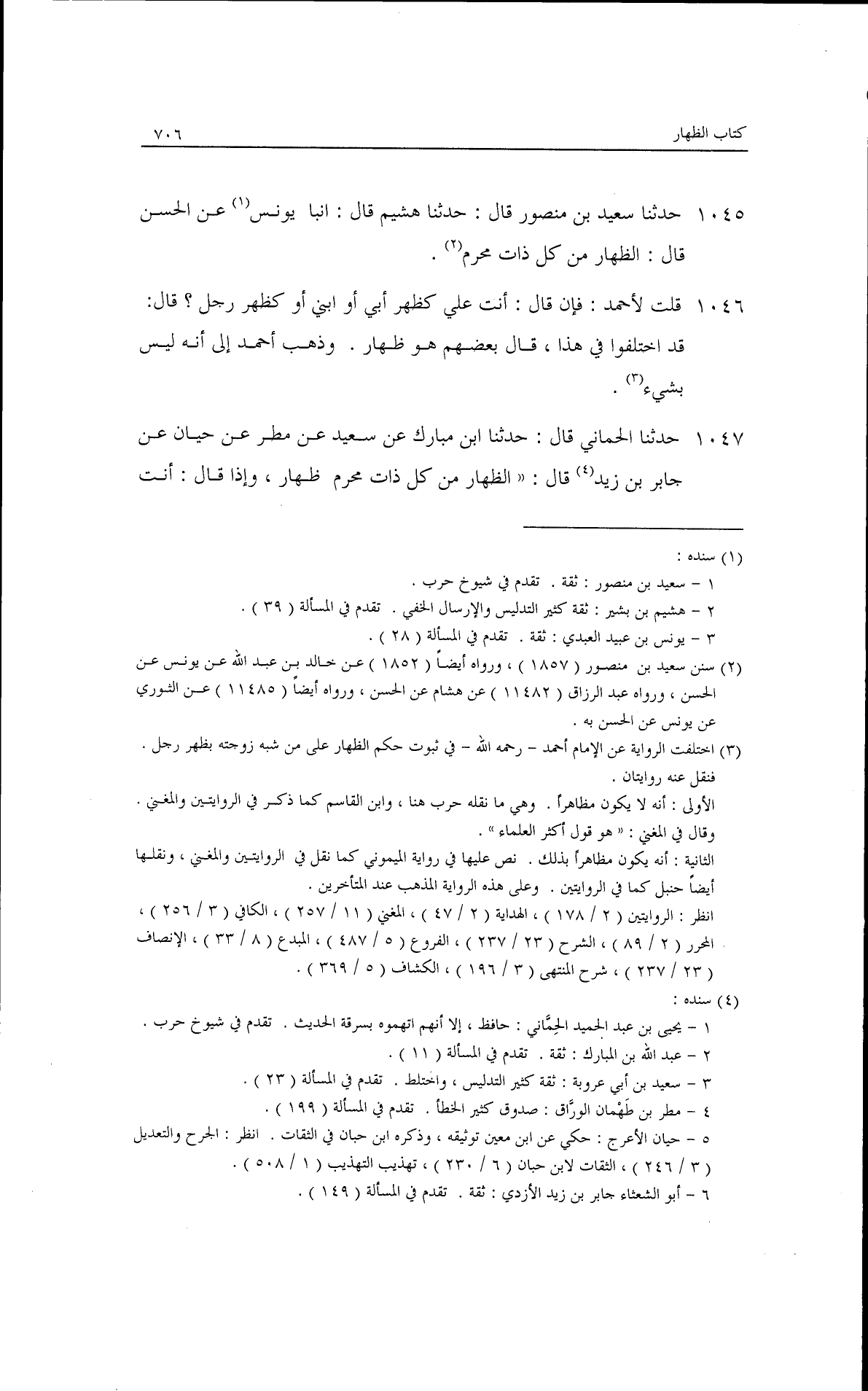 حدثنا الحماني قال: حدثنا ابن مبارك، عن سعيد، عن مطر، عن حيان، عن جابر بن زيد قال: الظهار من كل ذات محرم ظهار، وإذا قال: أنت