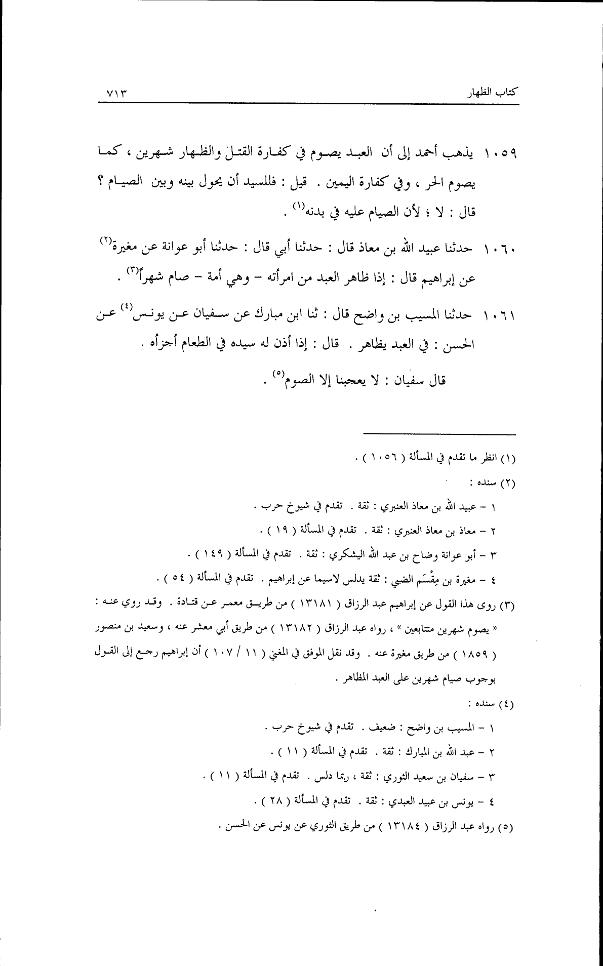 حدثنا عبيد الله بن معاذ قال: حدثنا أبي قال: حدثنا أبو عوانة، عن مغيرة، عن إبراهيم قال إذا ظاهر العبد من امرأته وهي أمة صام شهرًا.