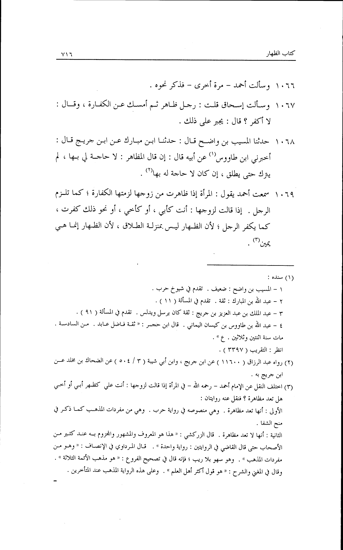 حدثنا المسيب بن واضح، قال: حدثنا ابن مبارك، عن ابن جريج قال: أخبرني ابن طاوس، عن أبيه قال: إن قال المظاهر: لا حاجة لي بها. لم يترك حتى يطلق إن كان لا حاجة له بها.