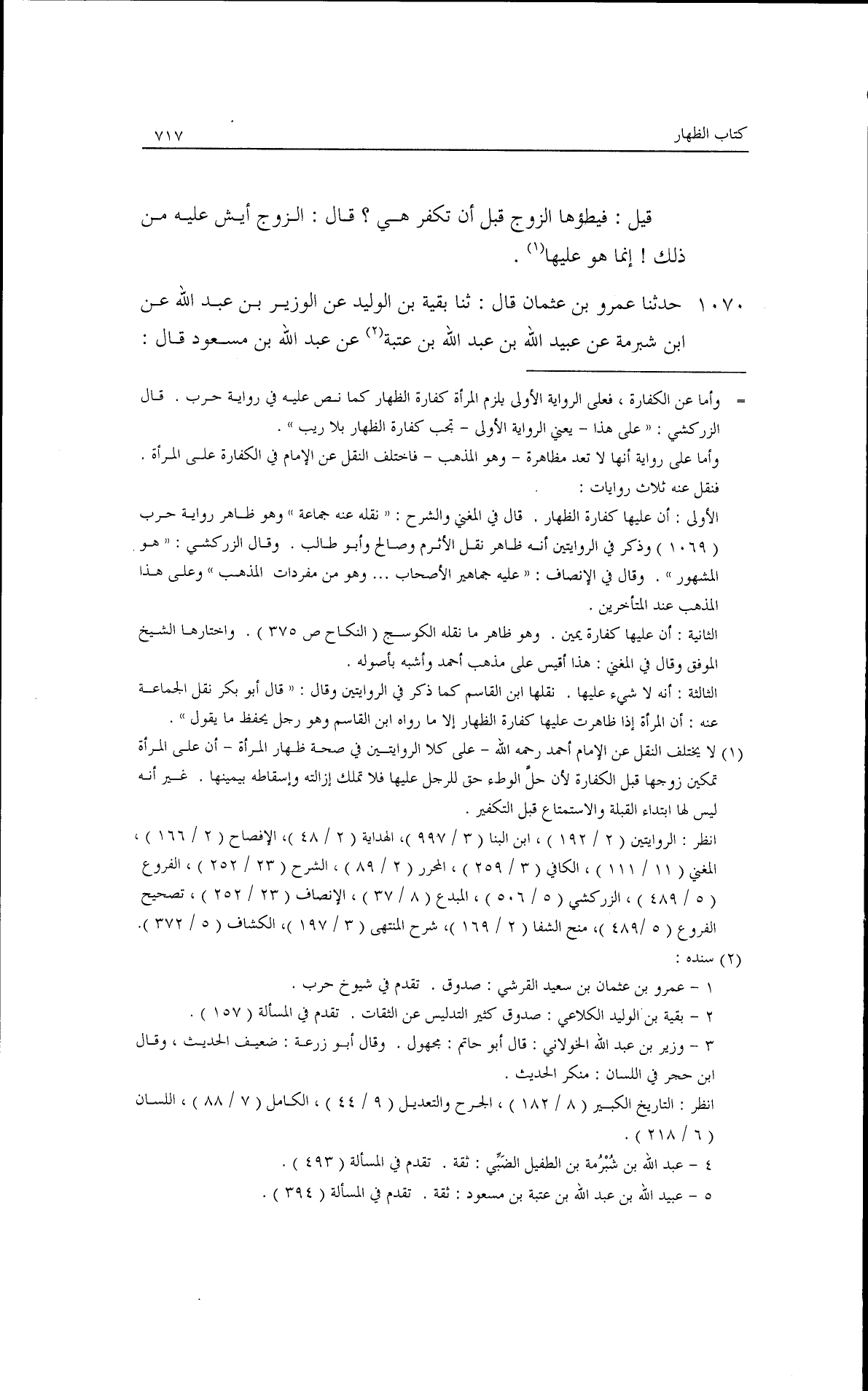 حدثنا عمرو بن عثمان قال: ثنا بقية بن الوليد، عن الوزير بن عبد الله، عن ابن شبرمة، عن عبيد الله بن عن عبد الله بن مسعود قال: