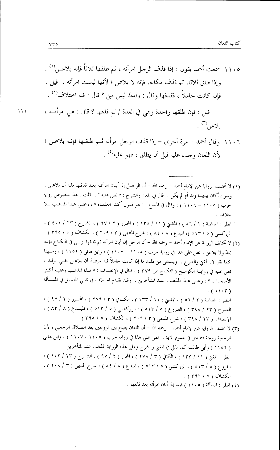 وقال أحمد مرة أخرى: إذا قذف الرجل امرأته ثم طلقها فإنه يلاعن، لأن اللعان وجب عليه قبل أن يطلق فهو عليه.