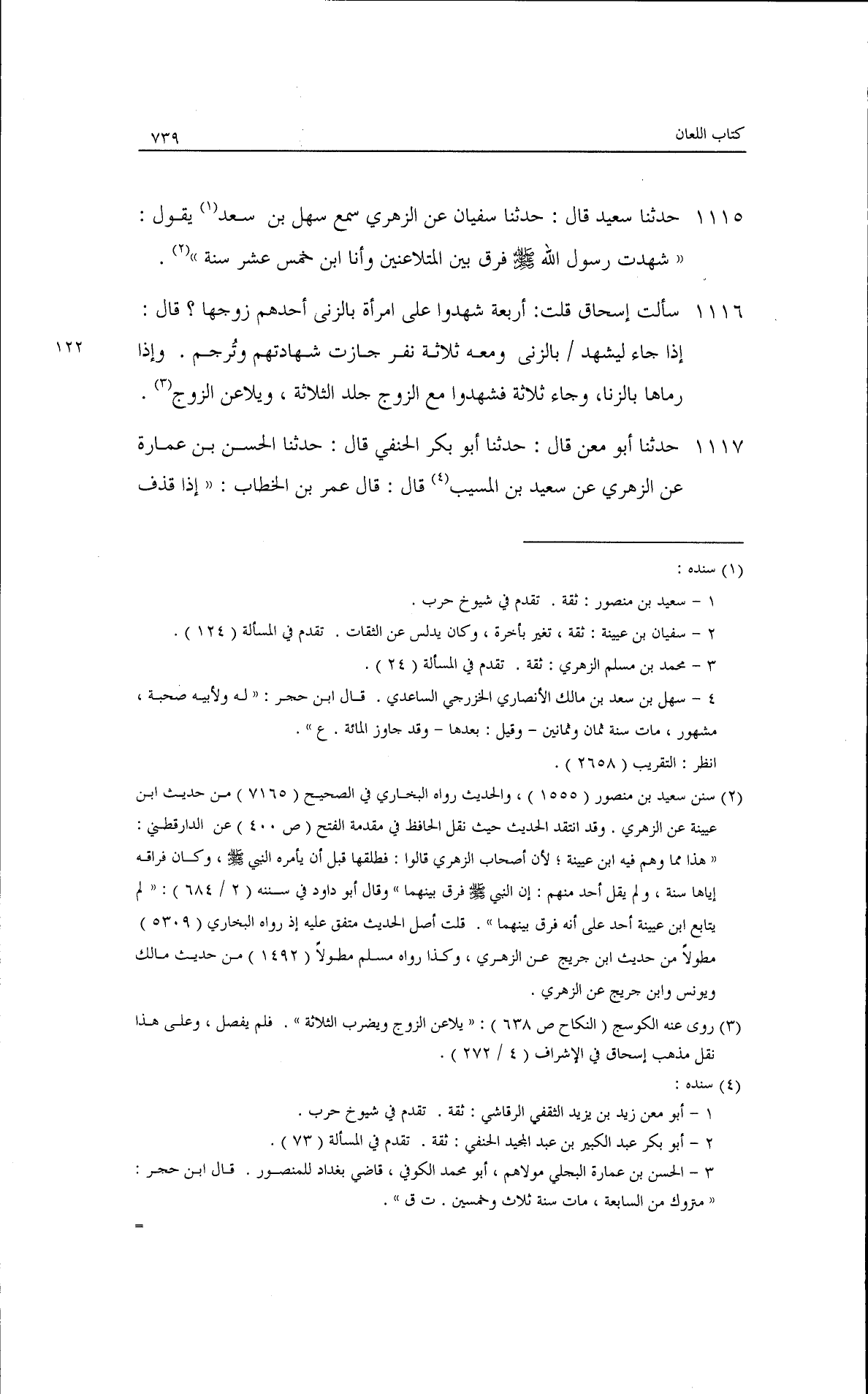 سألت إسحاق: أربعة شهدوا على امرأة بالزنا أحدهم زوجها· قال: إذا جاء ليشهد/119/ عليها بالزنا ومعه ثلاثة نفر جازت شهادتهم وترجم وإذا رماها بالزنا وجاء ثلاثة فشهدوا مع الزوج جلد الثلاثة ويلاعن الزوج.