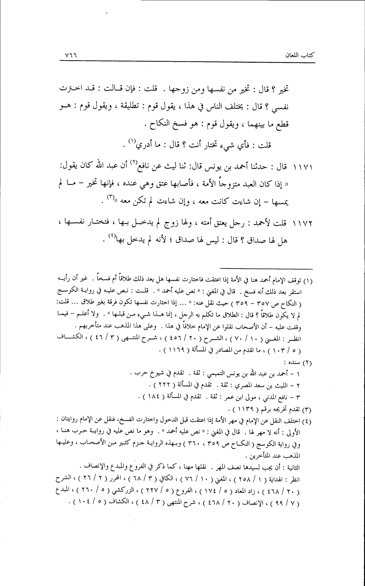 قال: حدثنا أحمد بن يونس، قال: ثنا ليث، عن نافع أن عبد الله كان يقول: إذا كان العبد متزوجًا الأمة فأصابها عتق وهي عنده فإنها تخير ما لم يمسها إن شاءت كانت معه وإن شاءت لم تكن معه.