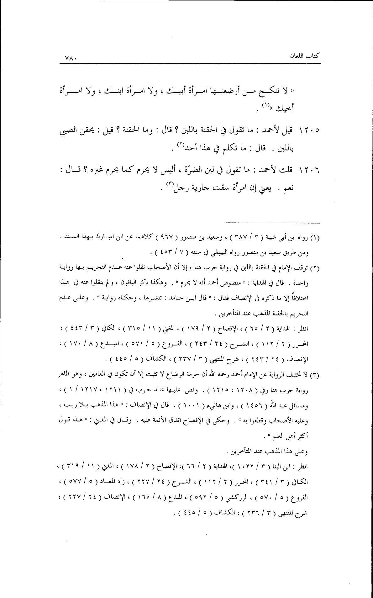 قِيل لأحمد ما تقول في الحقنة باللبن· قال: وما الحقنة؟ قِيل: يحقن الصبي باللبن· قال: ما تكلم في هذا أحد.