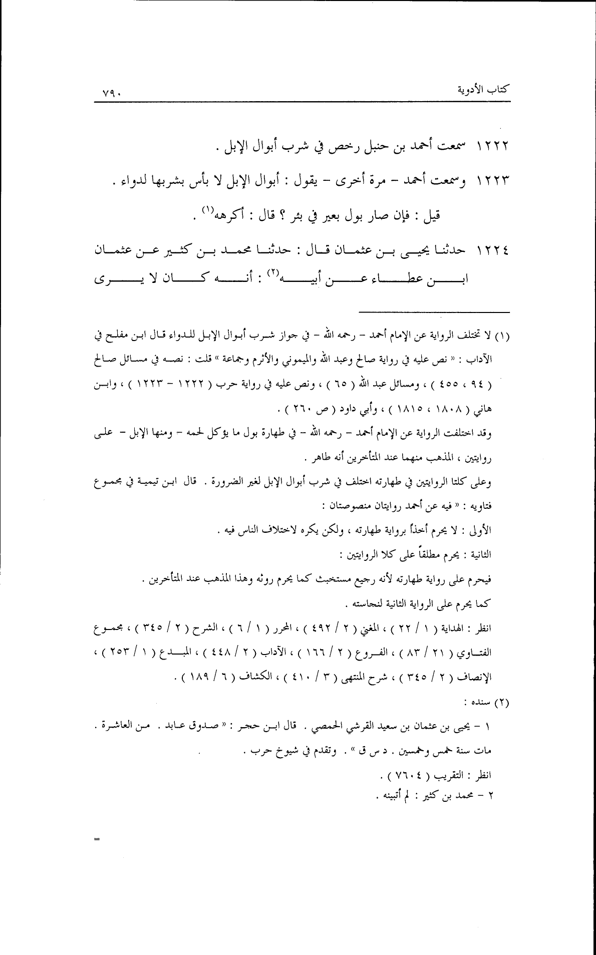 وسمعت أحمد مرة أخرى يقول: أبوال الإبل لا بأس بشربها لدواء.