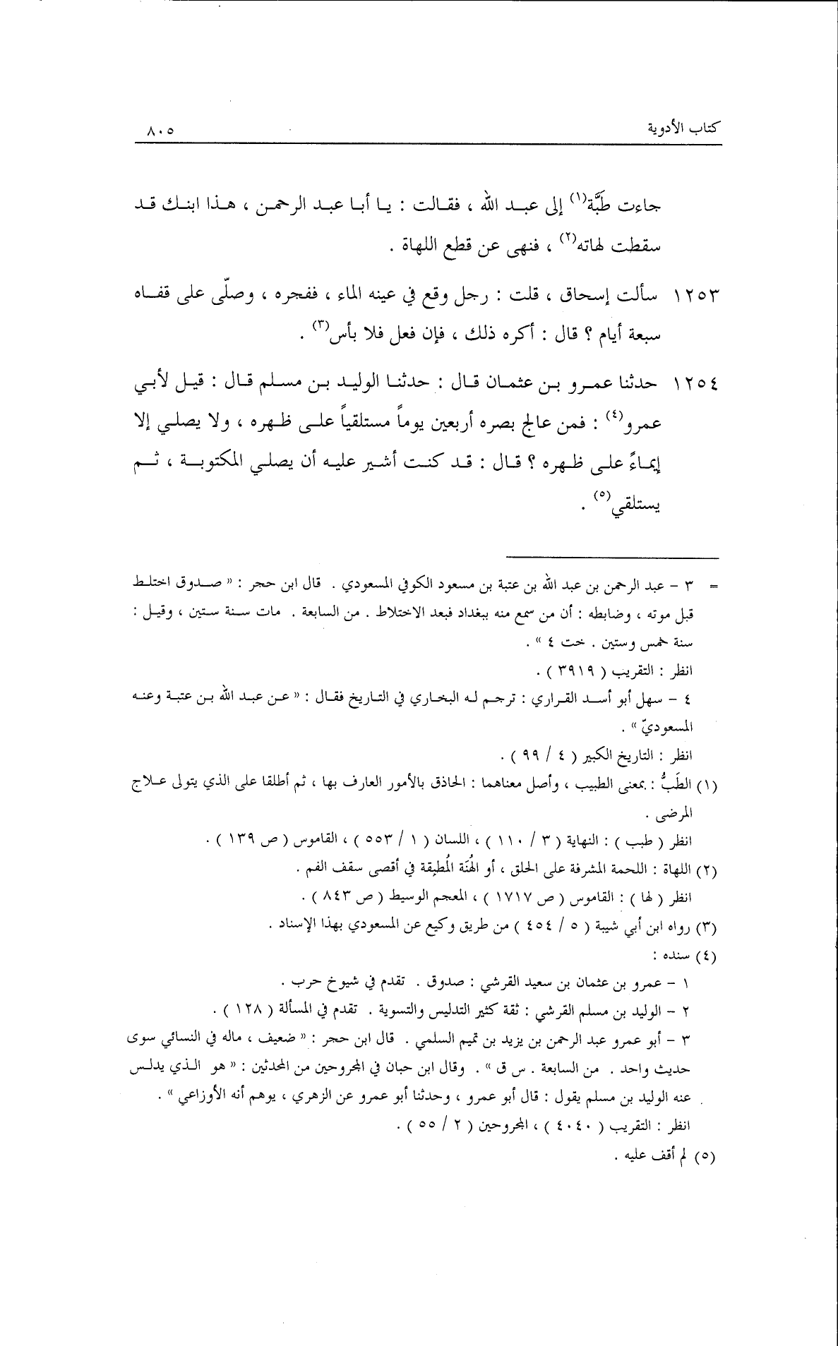 جاء طبي إلى عبد الله فقال: يا أبا عبد الرحمن هذا ابنك قد سقطت لهاته فنهى عن قطع اللهاة.