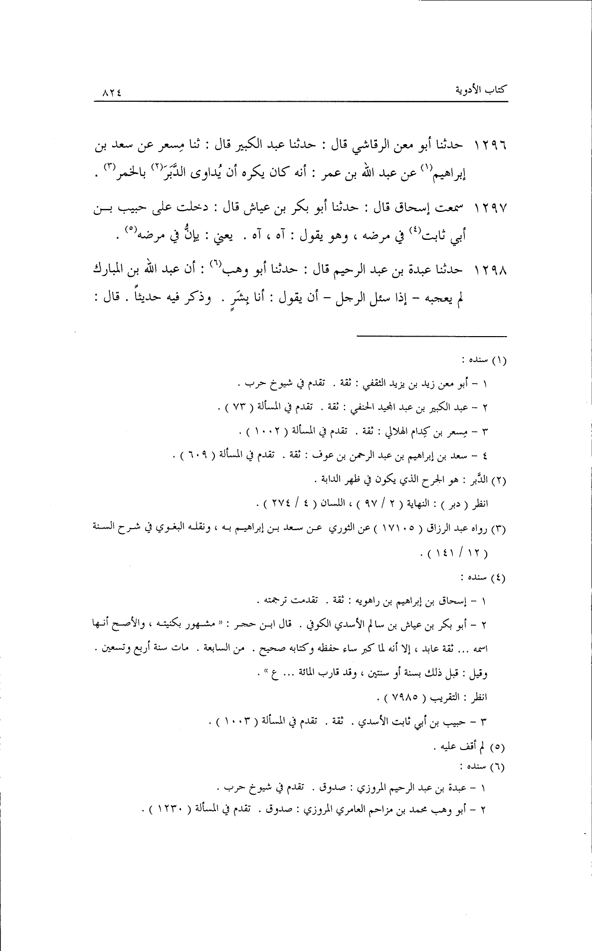حدثنا أبو معن الرقاشي قال: حدثنا عبد الكبير قال: ثنا مسعر، عن سعد بن إبراهيم، عن عبد الله بن عمر أنه كان يكره أن يداوى الدبر بالخمر.