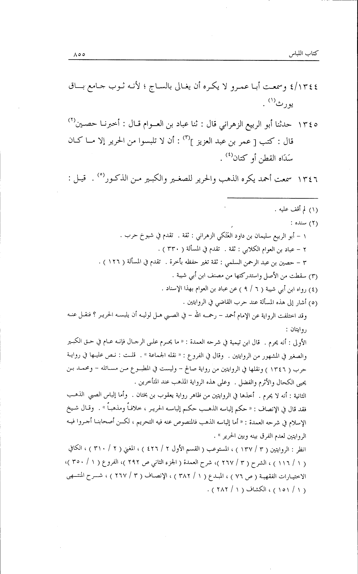 حدثنا أبو الربيع الزهراني، قال: ثنا عباد بن العوام، قال: أخبرنا حصين قال: كتب أن لا يلبسوا من الحرير إلا ما كان سداه القطن أو كتان.