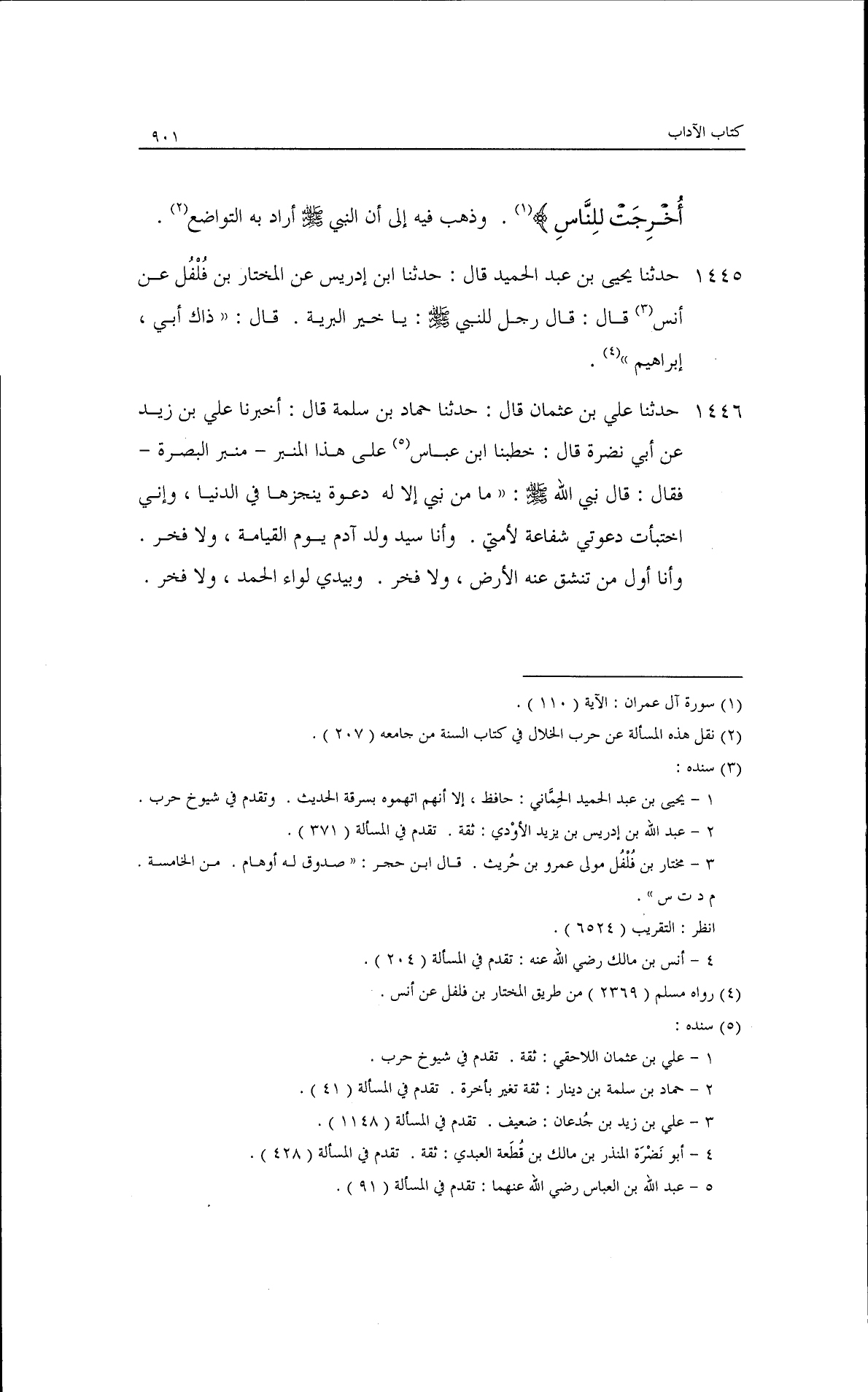 حدثنا يحيى بن عبد الحميد، قال: حدثنا ابن إدريس، عن المختار بن فلفل، عن أنس قال: قال رجل للنبي - صلى الله عليه وسلم - يا خير البرية· قال: ((ذاك أبي إبراهيم)).