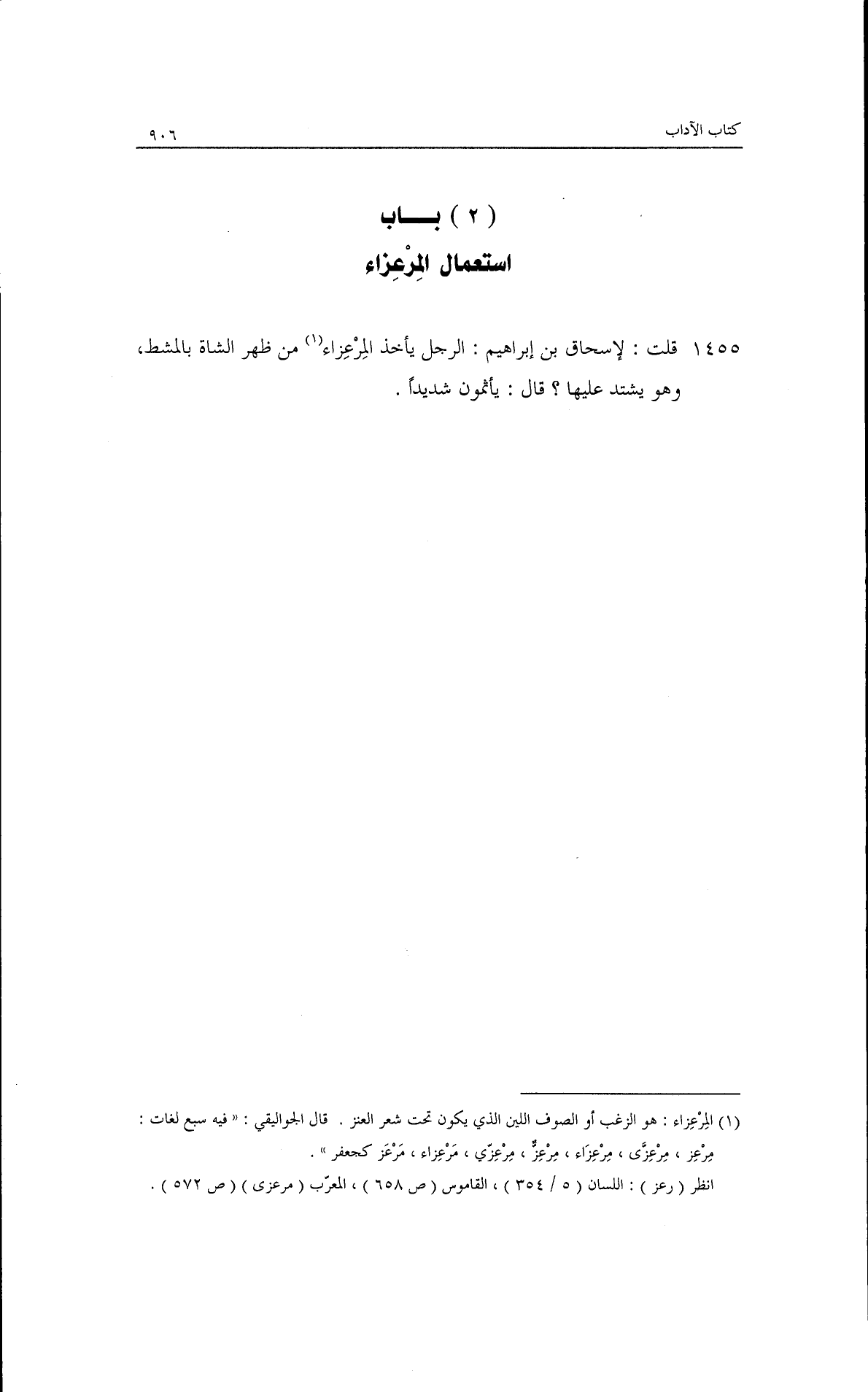 قلتُ لإسحاق بن إبراهيم: الرجل يأخذ المرعراء من ظهر الشاه بالمشط وهو يشتد عليها؟ قال: يأثمون شديدًا.