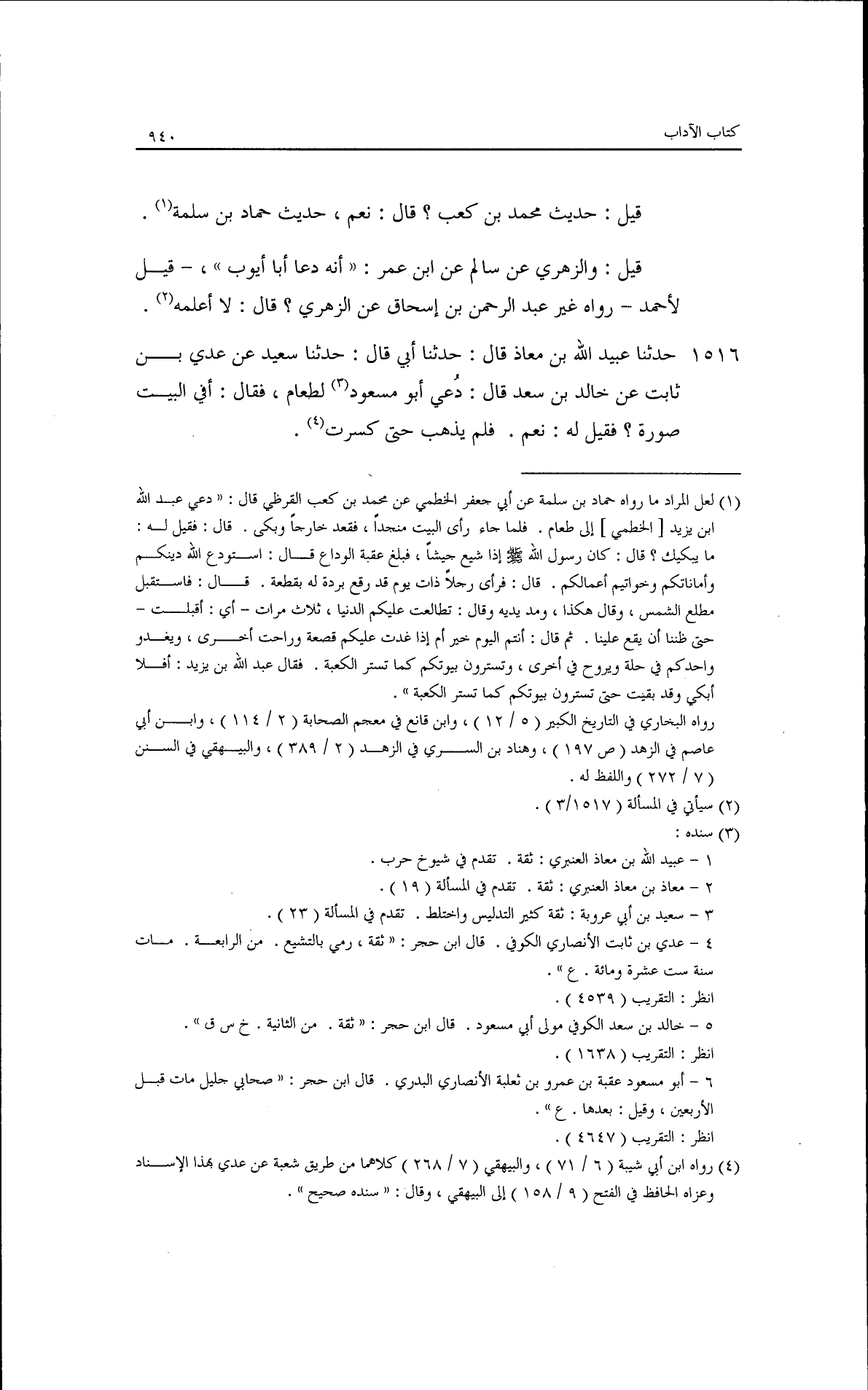 قيل: حديث محمد بن كعب؟ قال: نعم حديث حماد بن سلمة.