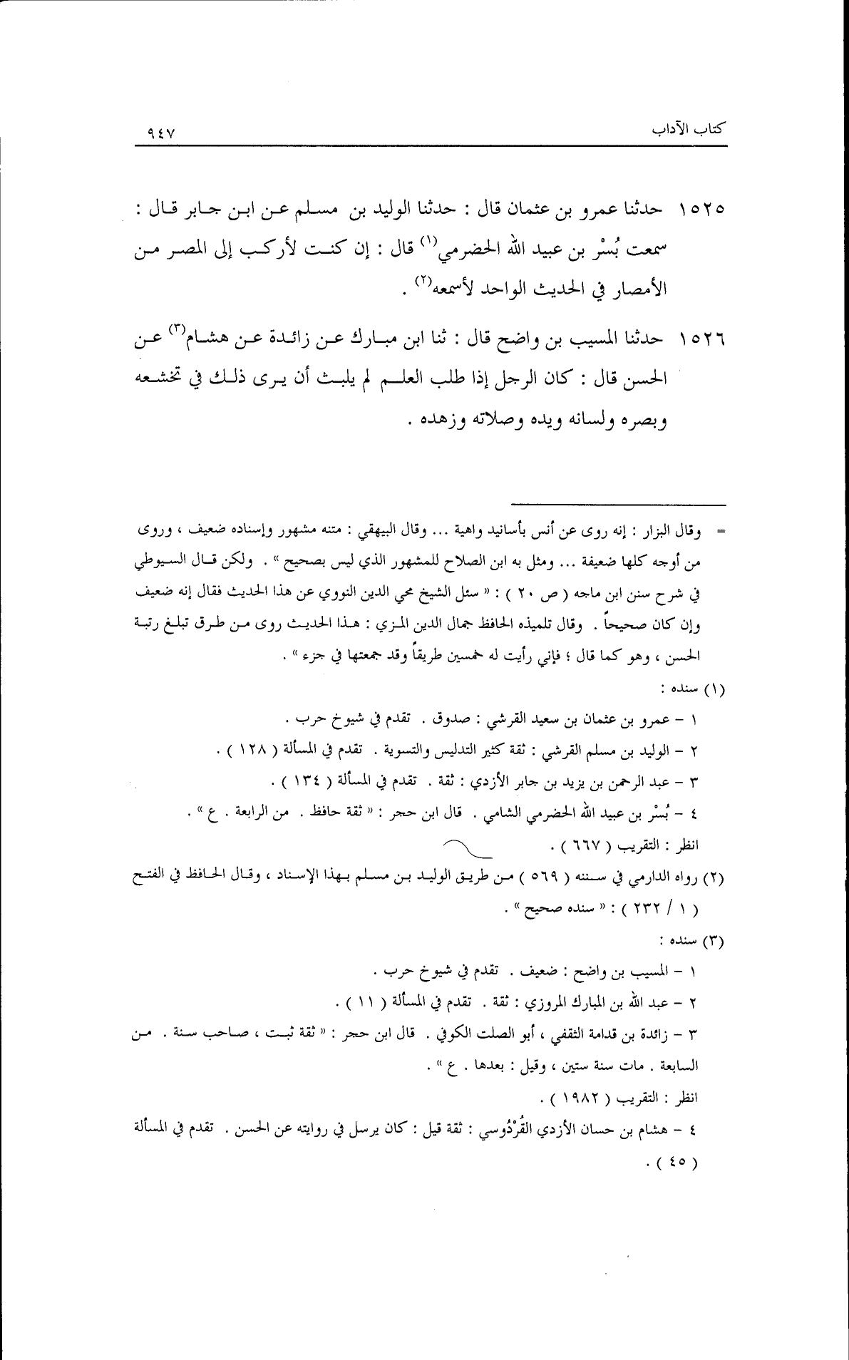 حدثنا عمرو بن عثمان، قال: حدثنا الوليد بن مسلم، عن ابن جابر قال: سمعت بشر بن عبيد الله الحضرمي قال: إن كنت لأركب إلى المصر من الأمصار في الحديث الواحد لأسمعه.