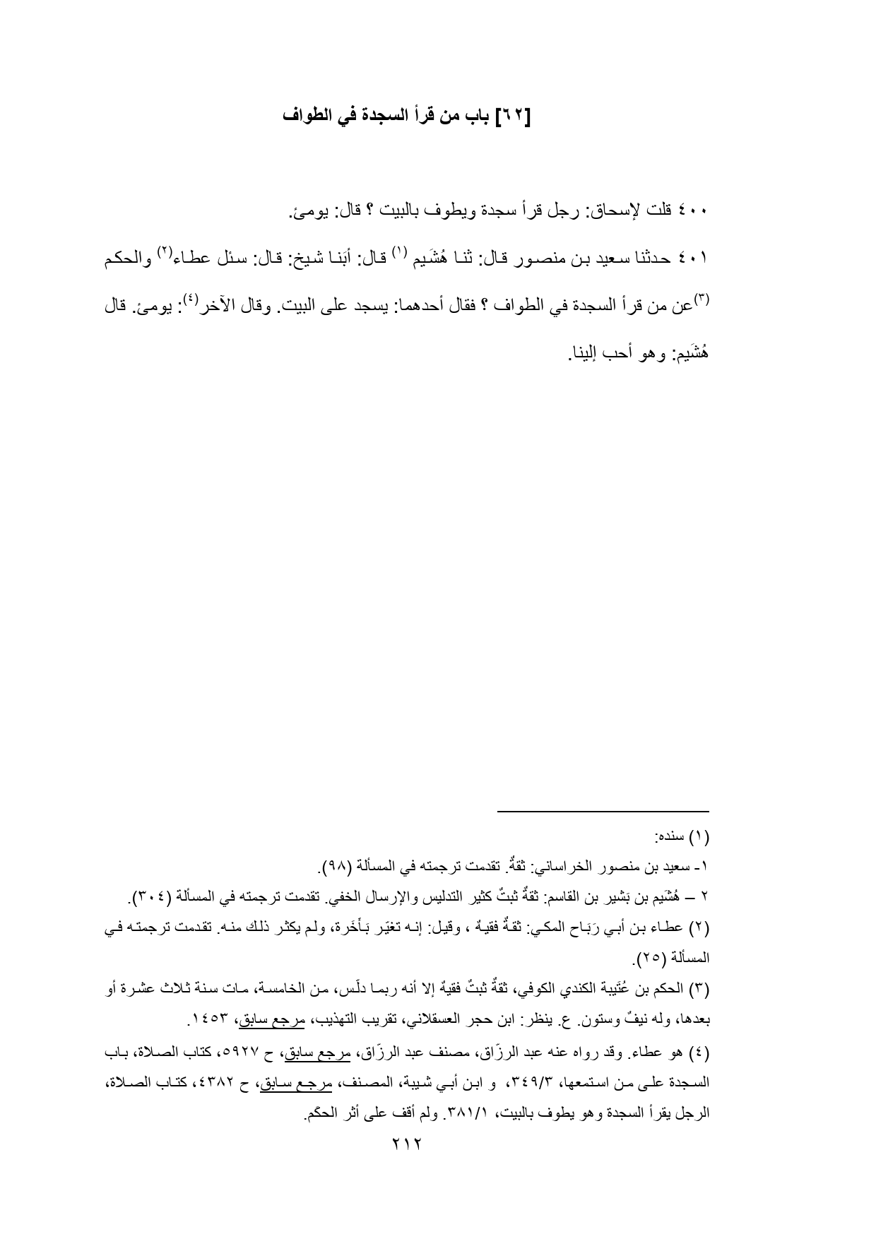 1 - سعيد بن منصور الخراساني: ثقةٌ. تقدمت ترجمته في المسألة (98).