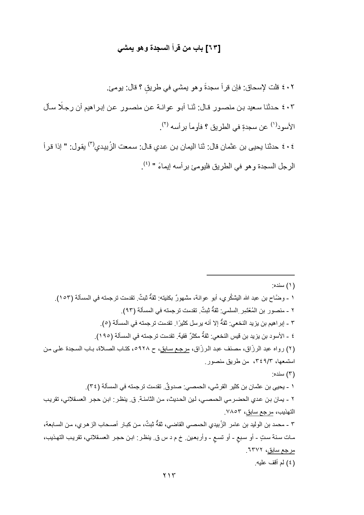 [63] باب من قرأ السجدة وهو يمشي