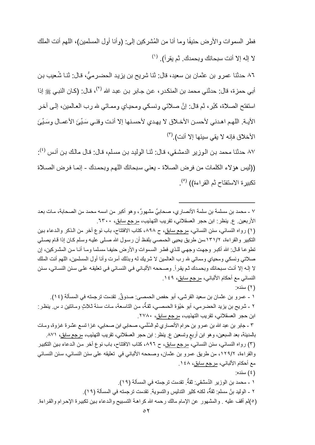 (¬3) رواه النسائي، سنن النسائي، مرجع سابق، ح 896، كتاب الافتتاح، باب نوع آخر من الدعاء بين التكبير والقراءة، 2/ 129، من طريق عمرو بن عثمان، وصححه الألباني في تعليقه على سنن النسائي، سنن النسائي مع أحكام الألباني، مرجع سابق، 148.
