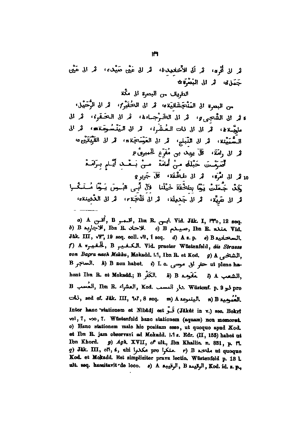 من البصرة الى المنجشانية، ثم الى الحفير، ثم الى الرّحيل، ثم الى الشّجى، ثم الى الخرجاء، ثم الى الحفر، ثم الى ماويّة، ثم الى الى ذات العشر، ثم الى الينسوعة، ثم الى السّمينة، ثم الى النّباج، ثم الى العوسجة، ثم الى القريتين، ثم الى رامة، قال يزيد بن مفرّغ الحميرىّ أصرمت حبلك من أمامه من بعد أيّام برامه ثم الى امّرة، ثم الى طخفة، قال جرير وقد جعلت يوما بطخفة خيلنا لآل أبى قابوس يوما منكّرا ثم الى ضريّة، ثم الى جديلة، ثم الى فلجة، ثم الى الدّفينة،