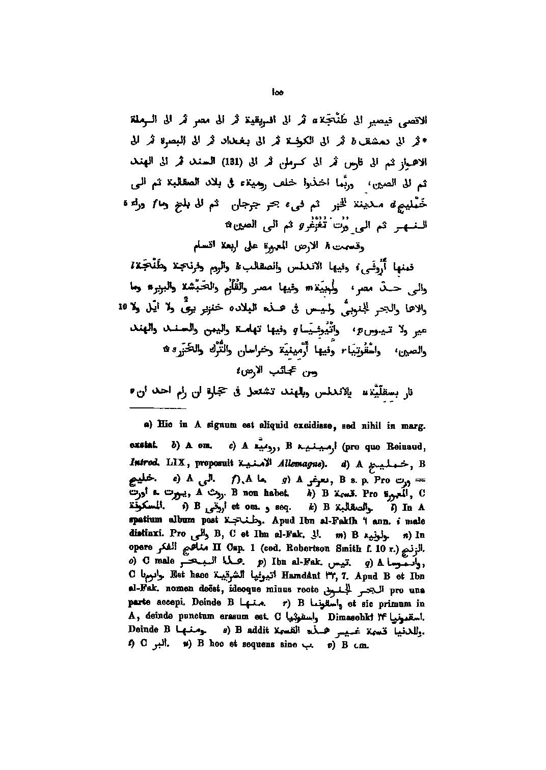 الاقصى فيصير الى طنجة ثم الى افريقية ثم الى مصر ثم الى الرملة ثم الى دمشق ثم الى الكوفة ثم الى بغداد ثم الى البصرة ثم الى الاهواز ثم الى فارس ثم الى كرمان ثم الى (131) السند ثم الى الهند ثم الى الصين، وربّما اخذوا خلف رومية فى بلاد الصقالبة ثم الى خمليج مدينة الخزر ثم فى بحر جرجان ثم الى بلخ وما وراء النهر ثم الى ورت تغزغر ثم الى الصين