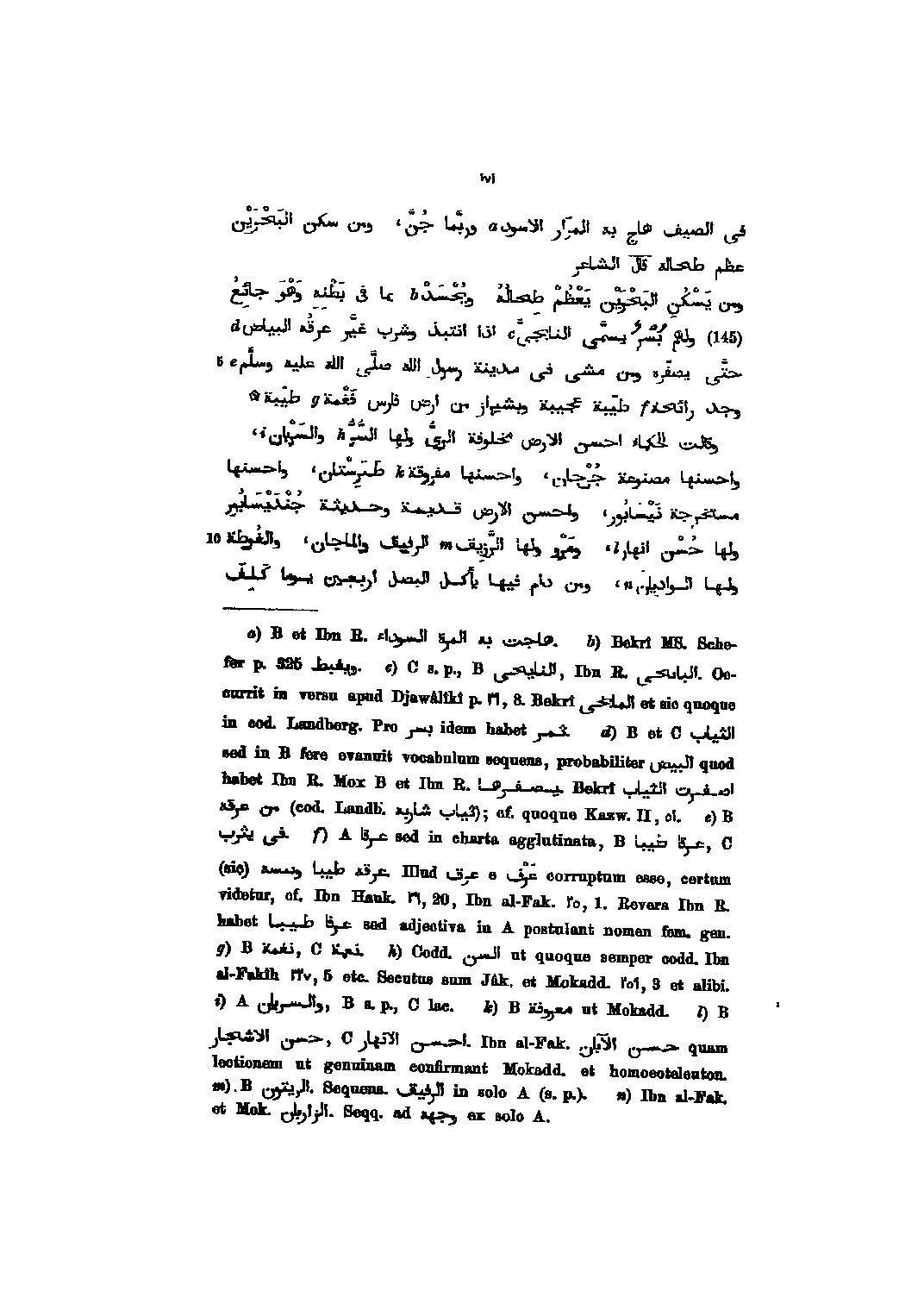 فى الصيف هاج به المرار الاسود وربّما جنّ، ومن سكن البحرين عظم طحاله قال الشاعر ومن يسكن البحرين يعظم طحاله ويحسد بما فى بطنه وهو جائع (145) ولهم بسر يسمّى النابجىّ اذا انتبذ وشرب غيّر عرقه البياض حتّى يصفّره ومن مشى فى مدينة رسول الله صلّى الله عليه وسلّم وجد رائحة طيّبة عجيبة وبشيراز من ارض فارس فغمة طيّبة وقالت الحكماء احسن الارض مخلوقة الرىّ ولها السّرّ والسربان، واحسنها مصنوعة جرجان، واحسنها مفروقة طبرستان، واحسنها مستخرجة نيسابور، واحسن الارض قديمة وحديثة جنديسابور ولها حسن انهار، ومرو ولها الرّزيق الرفيق والماجان، والغوطة ولها الواديان، ومن دام فيها يأكل البصل اربعين يوما كلف