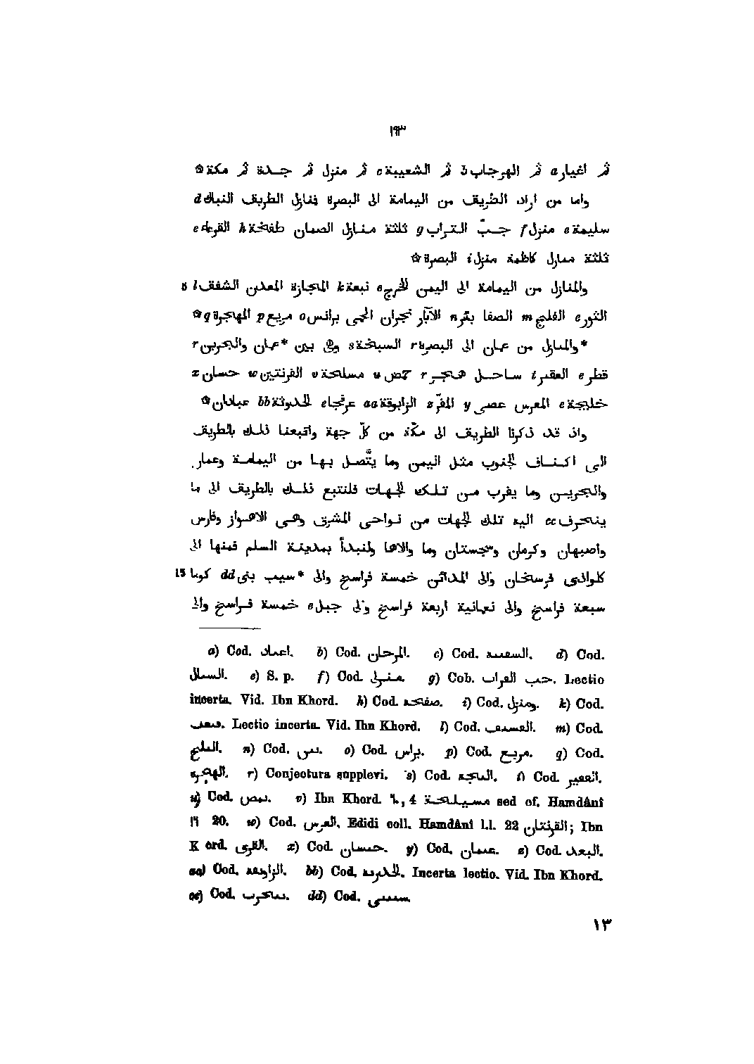 ثم اغيار ثم الهرجاب ثم الشعيبة ثم منزل ثم جدة ثم مكة واما من اراد الطريق من اليمامة الى البصرة فمنازل الطريق النباك سليمة منزل جبّ التراب ثلثة منازل الصمان طفخة القرعاء ثلثة منازل كاظمة منزل البصرة والمنازل من اليمامة الى اليمن الخرج نبعة المجازة المعدن الشفق الثور الفلج الصفا بئر الآبار نجران الحمى برانس مريع المهجرة والمنازل من عمان الى البصرة السبخة وهى بين عمان والبحرين قطر العقير ساحل هجر حمض مسلحة القرنتين حسان خليجة المعرس عصى المقرّ الزابوقة عرفجا الحدوثة عبادان واذ قد ذكرنا الطريق الى مكّة من كلّ جهة واتبعنا ذلك بالطريق الى اكناف الجنوب مثل اليمن وما يتّصل بها من اليمامة وعمان والبحرين وما يقرب من تلك الجهات فلنتبع ذلك بالطريق الى ما ينحرف اليه تلك الجهات من نواحى المشرق وهى الاهواز وفارس واصبهان وكرمان وسجستان وما والاها ولنبدأ بمدينة السلم فمنها الى كلواذى فرسخان والى المدائن خمسة فراسخ والى سيب بنى كوما سبعة فراسخ والى نعمانية اربعة فراسخ والى جبل خمسة فراسخ والى