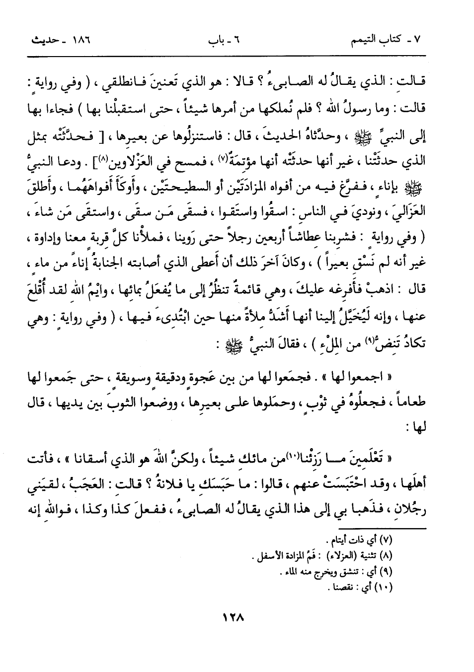 غير أنه لم نَسْقِ بعيراً)، وكانَ آخرَ ذلك أن أَعطى الذي أصابته الجنابةُ إَناءً من ماءٍ،