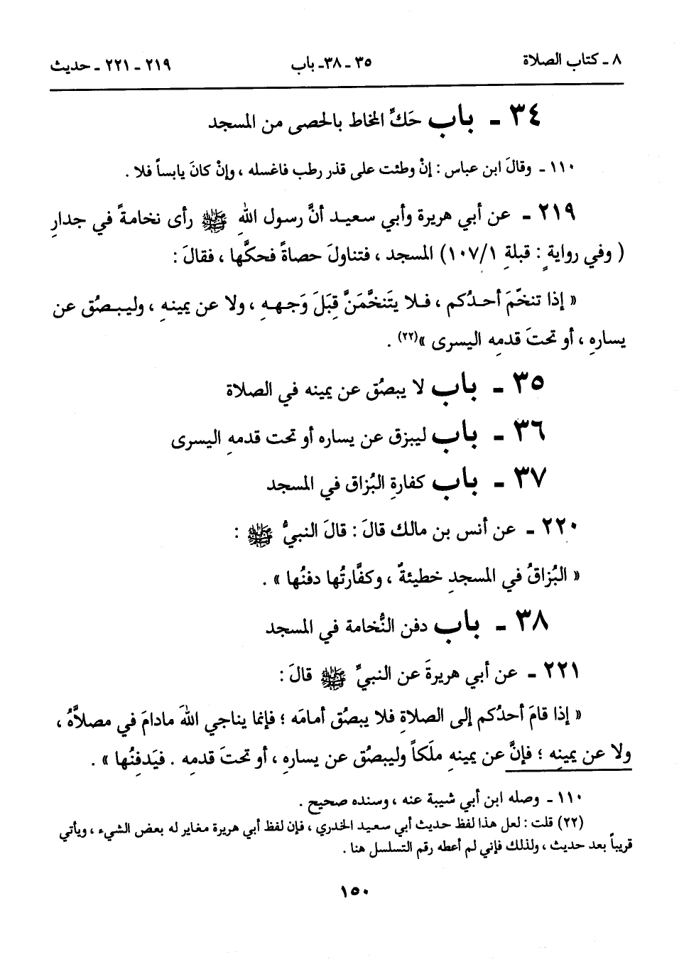 34 - باب حَكِّ المخاط بالحصى من المسجد