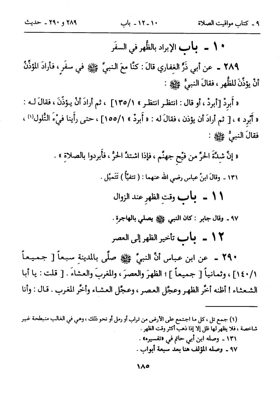 289 - عن أبي ذَرٍّ الغِفاري قالَ: كنَّا معَ النبيِّ - صلى الله عليه وسلم - في سفَرٍ، فأرادَ المؤذِّنُ أنْ يؤذِّنَ للظُّهر، فقالَ النبيُّ - صلى الله عليه وسلم -: