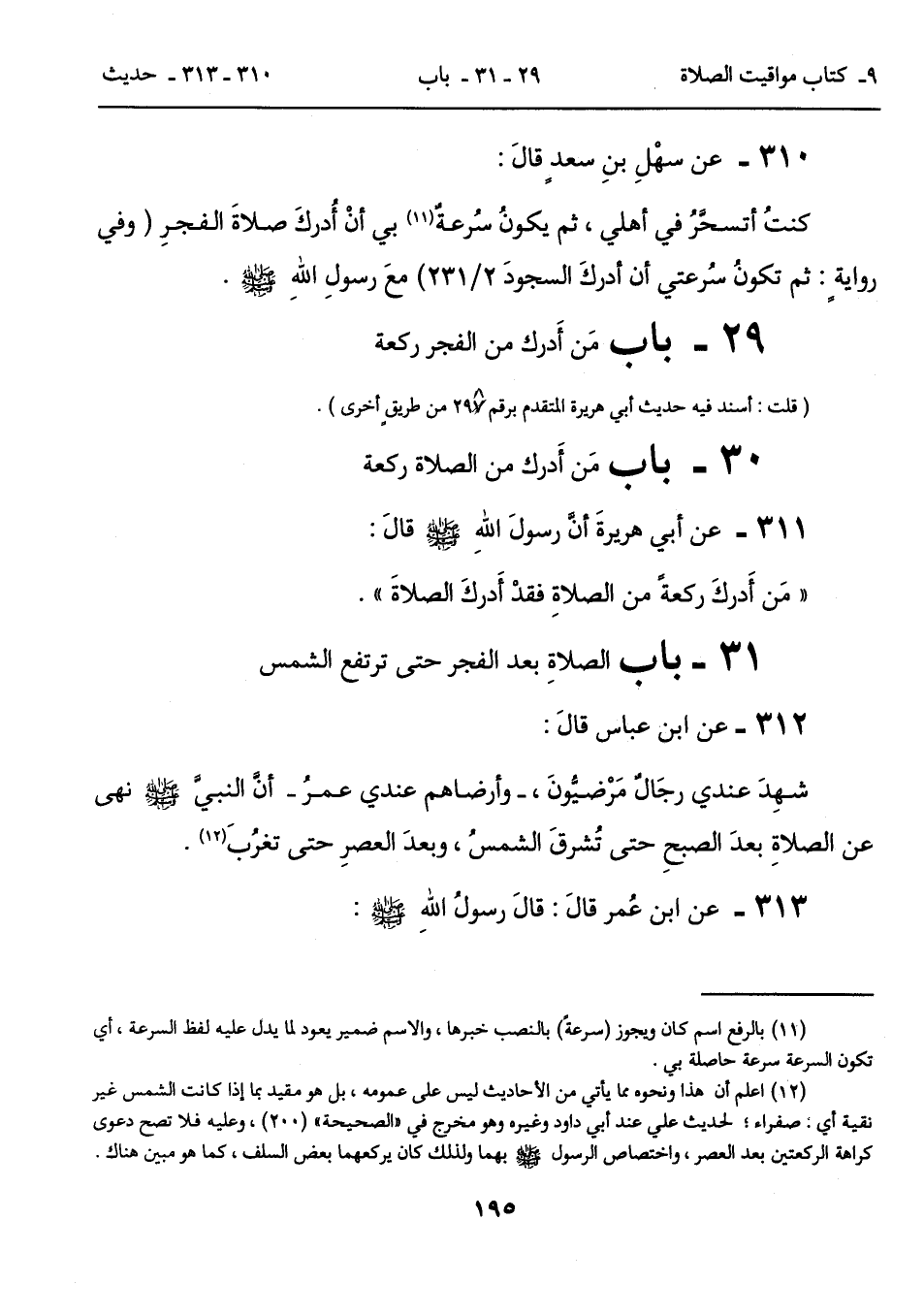 (12) اعلم أن هذا ونحوه مما يأتي من الأحاديث ليس على عمومه، بل هو مقيد بما إذا كانت الشمس غير نقية أي صفراء؛ لحديث علي عند أبي داود وغيره وهو مخرج في "الصحيحة" (200)، وعليه فلا تصح دعوى كراهة الركعتين بعد العصر، واختصاص الرسول - صلى الله عليه وسلم - بهما ولذلك كان يركعهما بعض السلف، كما هو مبين هناك.