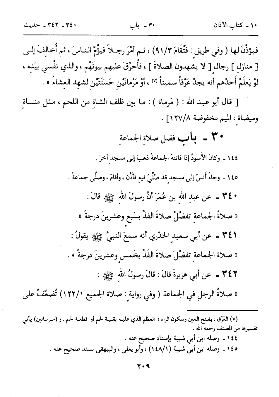 "صلاةُ الرجلِ في الجماعة (وفي روايةٍ: صلاة الجميع 1/ 122) تُضعَّفُ على