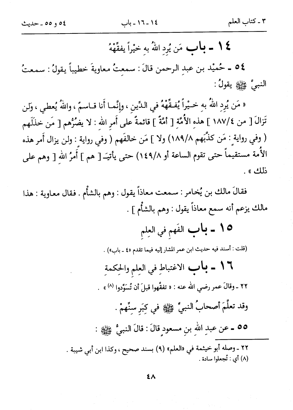 14 - باب مَن يُرِدِ اللهُ بهِ خيْراً يفقِّهْهُ