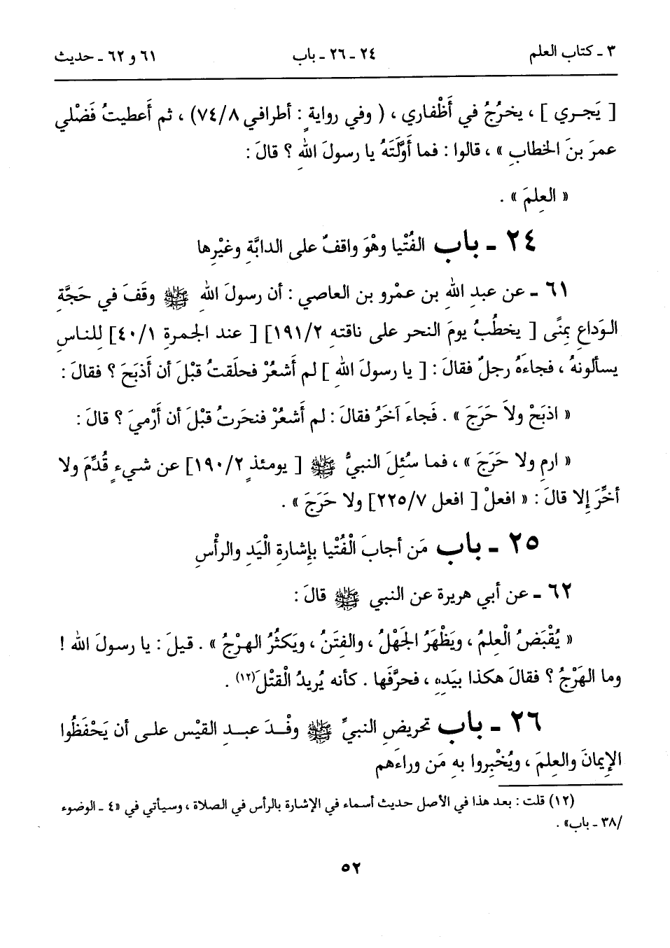 25 - باب مَن أجابَ الْفُتْيا بإِشارةِ الْيَدِ والرأْسِ
