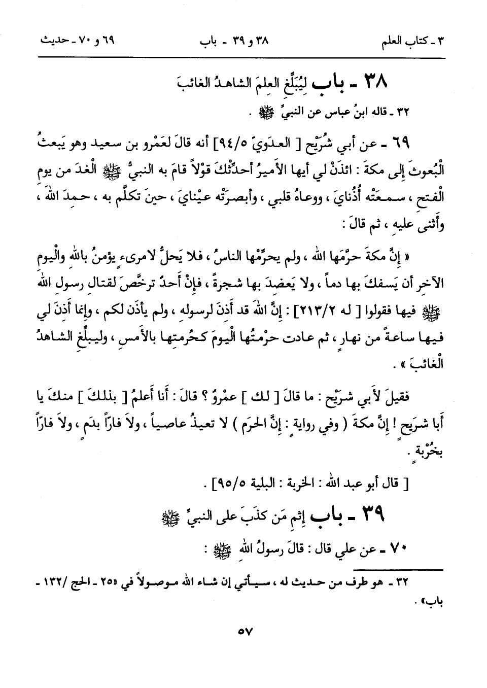 38 - باب لِيُبَلِّغِ العِلمَ الشاهدُ الغائبَ