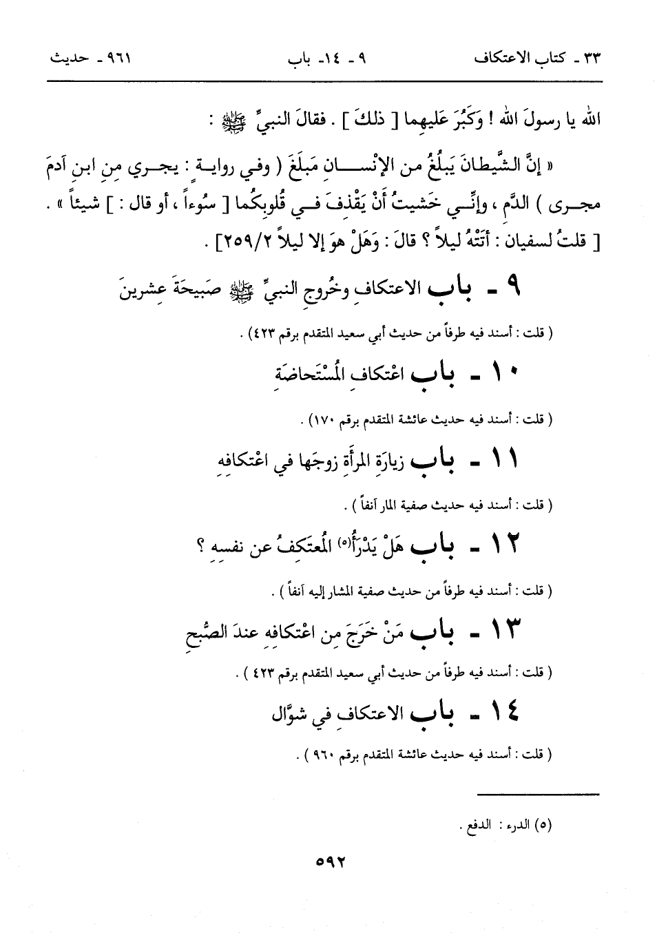 9 - باب الاعتكافِ وخُروجِ النبيِّ - صلى الله عليه وسلم - صبيحَةَ عِشرينَ