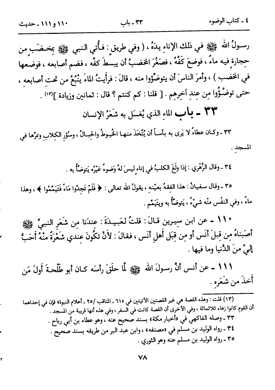 33 - باب الماءِ الذي يُغسَل به شَعَرُ الإنسان