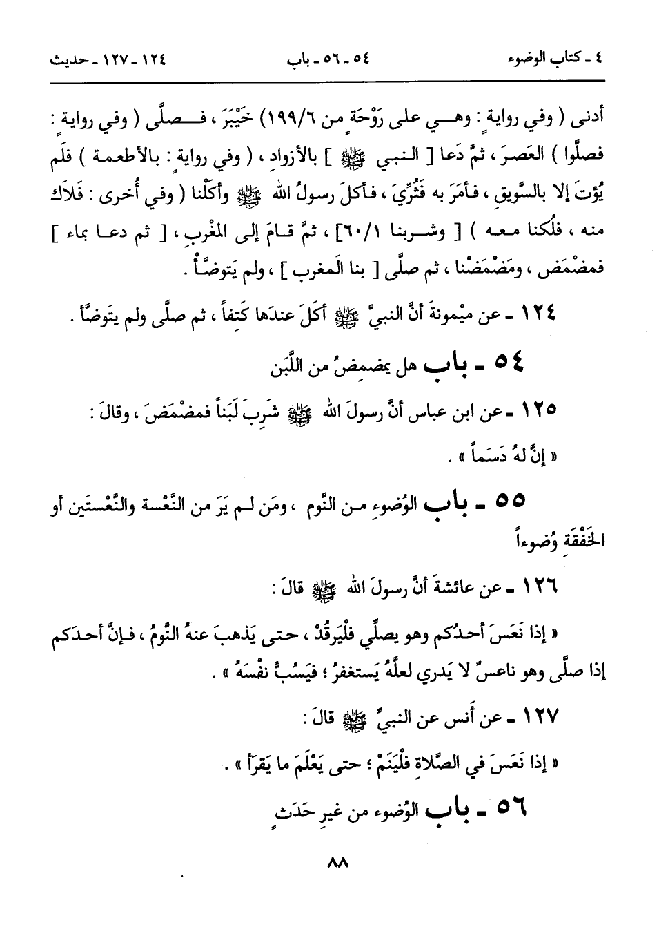 125 - عن ابن عباس أنَّ رسولَ الله - صلى الله عليه وسلم - شَرِبَ لَبَناً فمضْمَضَ، وقالَ: