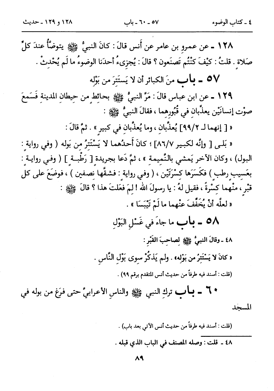 58 - باب ما جاءَ في غَسْلِ البَوْلِ