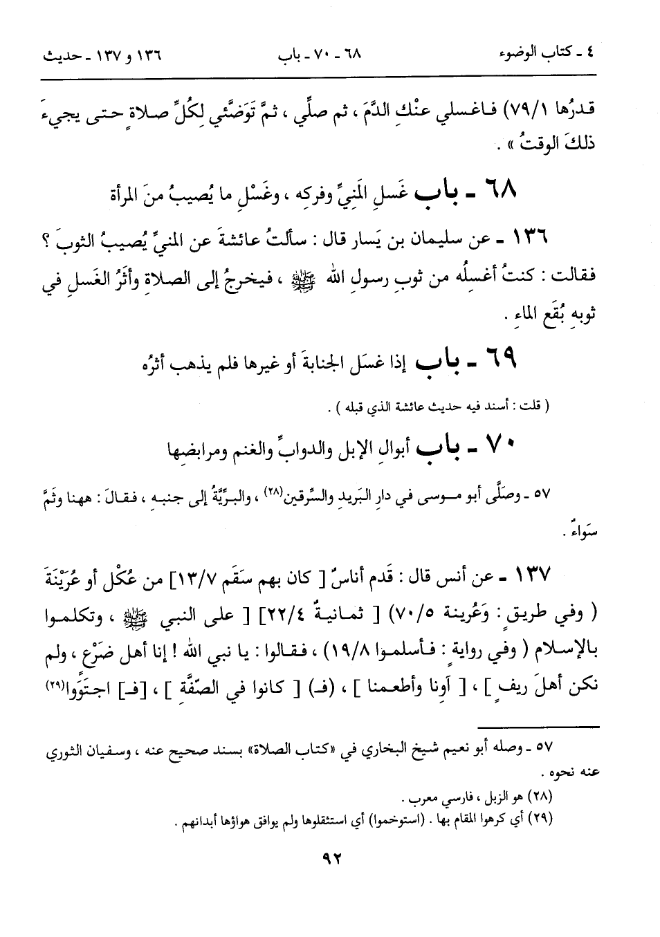 70 - باب أبوالِ الإبل والدوابِّ والغنم ومرابضِها
