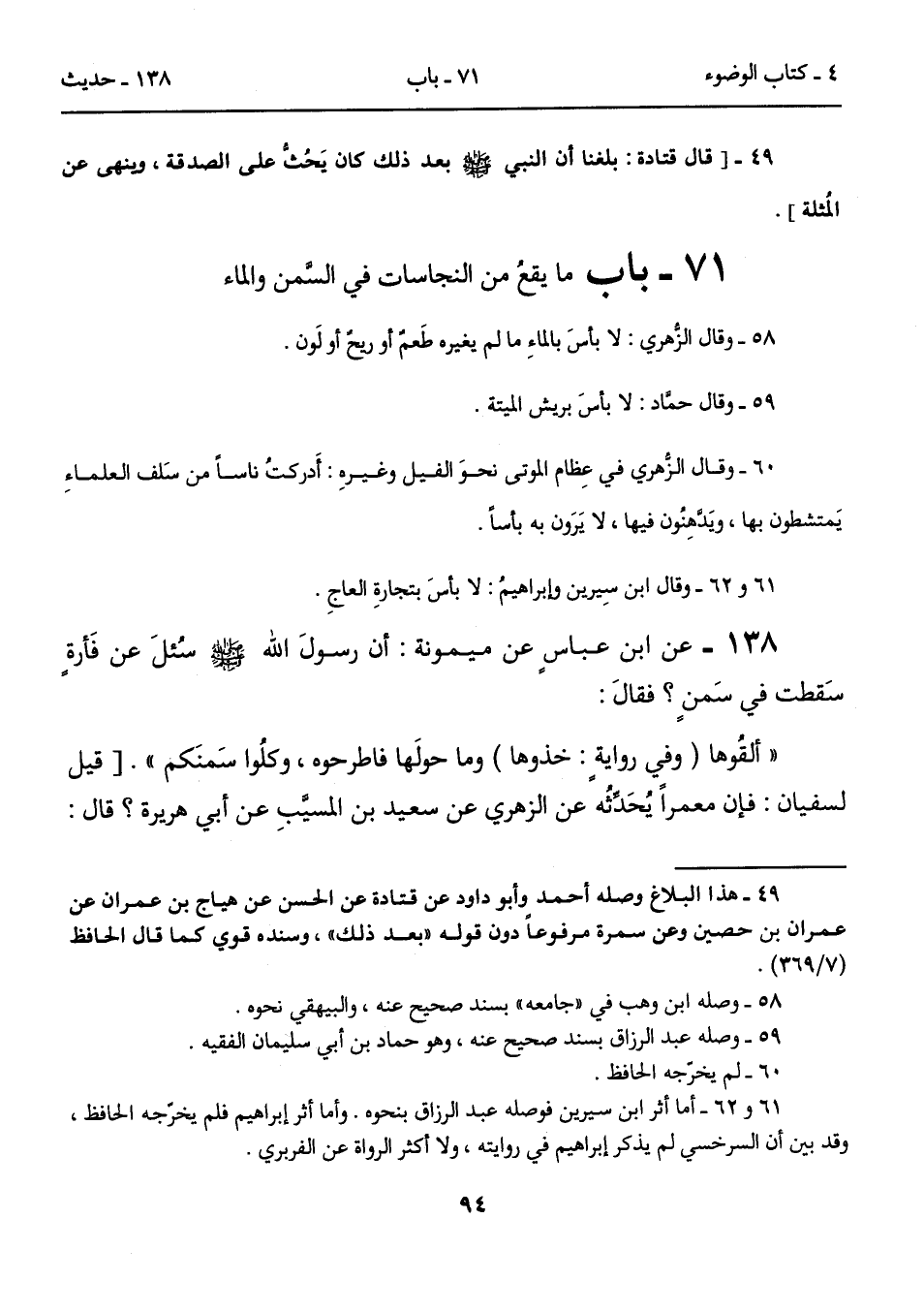 71 - باب ما يقعُ من النجاسات في السَّمن والماء