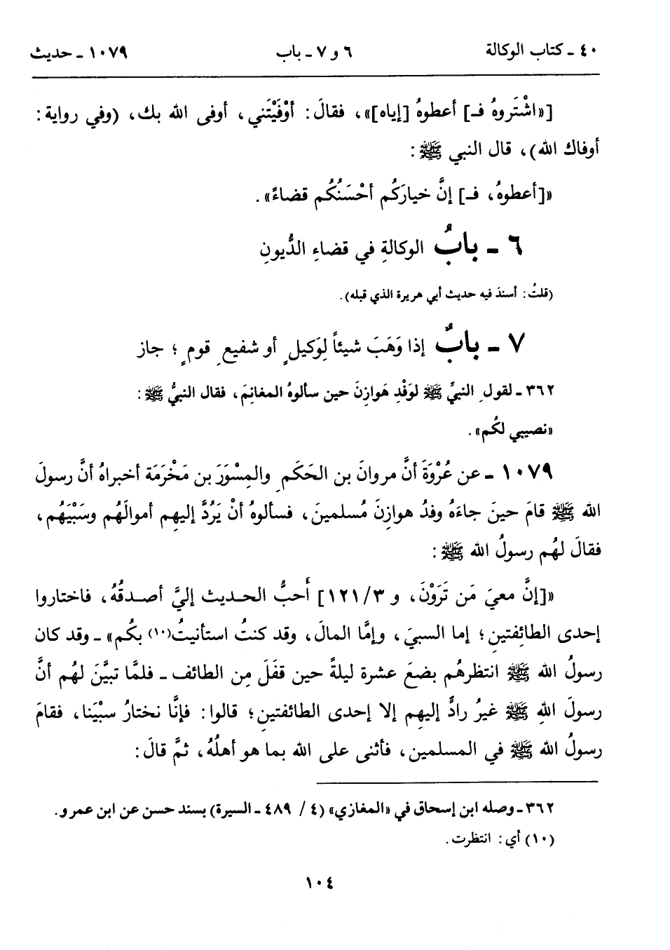 1079 - عن عُرْوَةَ أنَّ مروانَ بن الحَكَمِ والمِسْوَرَ بن مَخْرَمَة أخبراهُ أنَّ رسولَ الله - صلى الله عليه وسلم - قامَ حينَ جاءَهُ وفدُ هوازِنَ مُسلمينَ، فسألوهُ أنْ يَرُدَّ إليهِم أموالَهُم وسَبْيَهُم، فقالَ لهُم رسولُ الله - صلى الله عليه وسلم -: