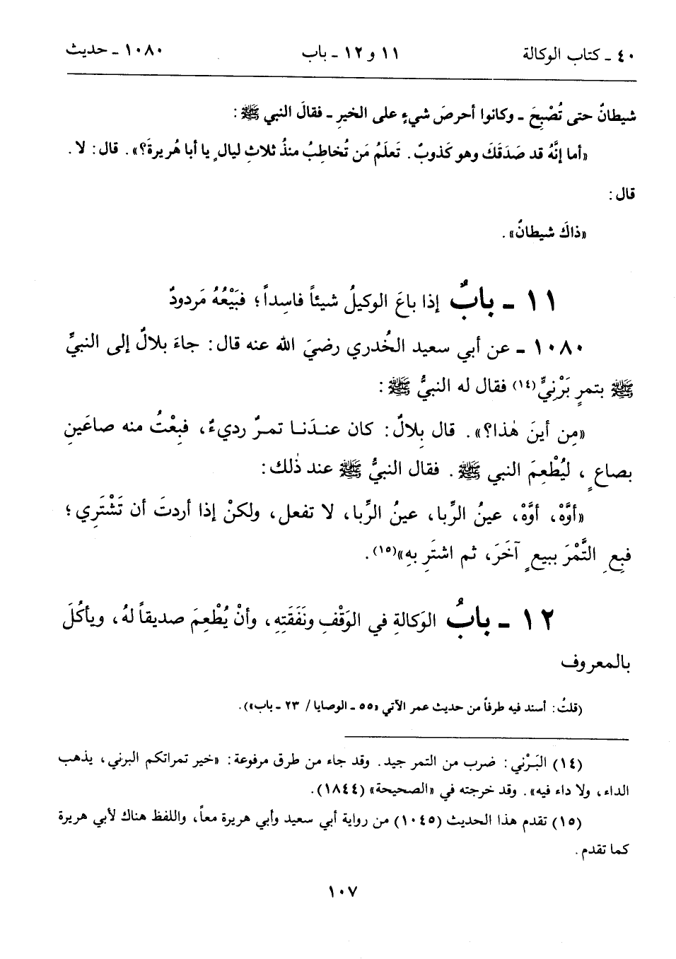 1080 - عن أبي سعيد الخُدري رضيَ الله عنه قال: جاءَ بلالٌ إلى النبيِّ - صلى الله عليه وسلم - بتمرٍ بَرْنِيٍّ (14) فقال له النبيُّ - صلى الله عليه وسلم -: