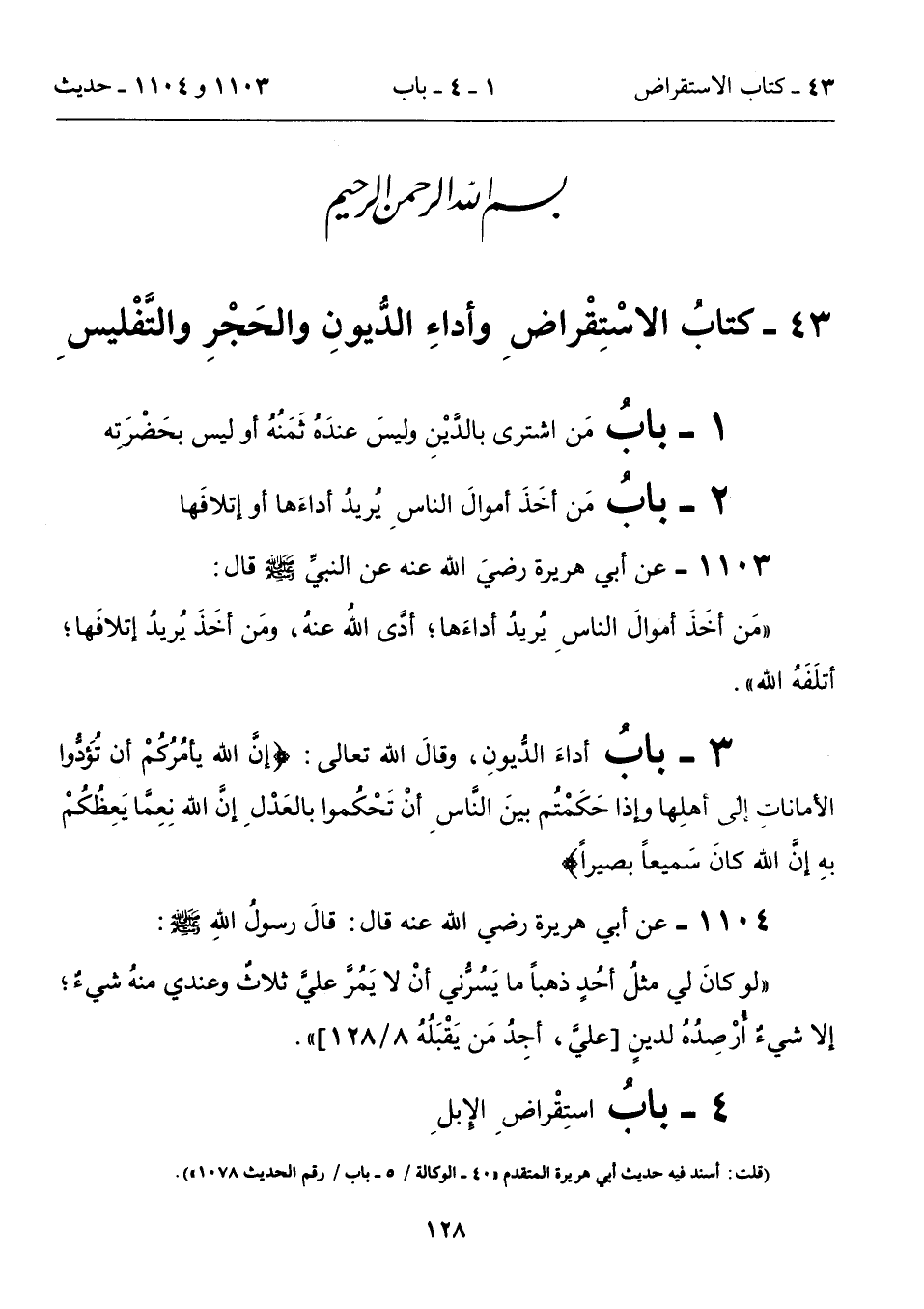 43 - كتابُ الاسْتِقْراضِ وأداءِ الدُّيونِ والحَجْرِ والتَّفْليسِ