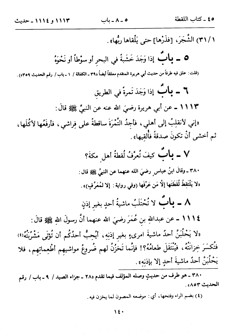 8 - بابٌ لا تُحْتَلَبُ ماشيةُ أحدٍ بغيرِ إذنٍ