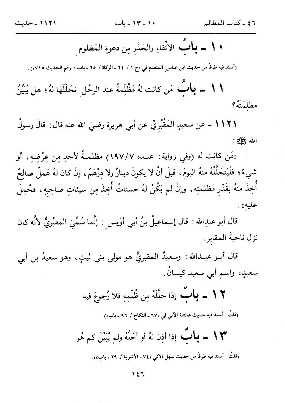 11 - بابُ مَن كانت لهُ مَظْلِمةٌ عندَ الرجُلِ فحَلَّلَهَا لهُ؛ هل يُبَيِّنُ مظلِمَتَهُ؟