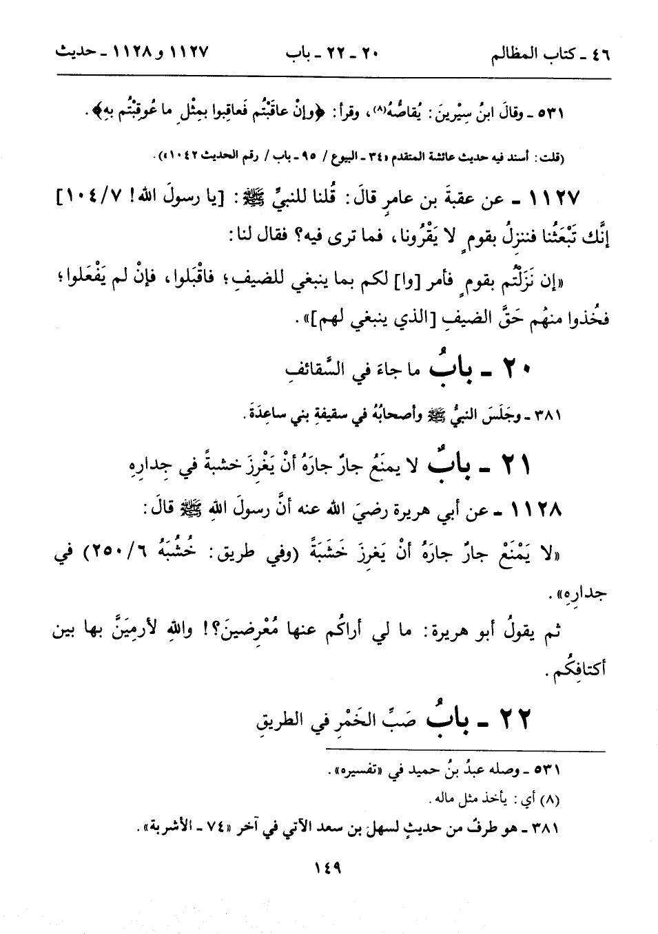 1127 - عن عقبةَ بن عامرٍ قالَ: قُلنا للنبيِّ - صلى الله عليه وسلم -: [يا رسولَ الله! 7/ 104] إنَّك تَبْعَثُنا فننزِلُ بقومٍ لا يَقْرُونا، فما ترى فيه؟ فقال لنا: