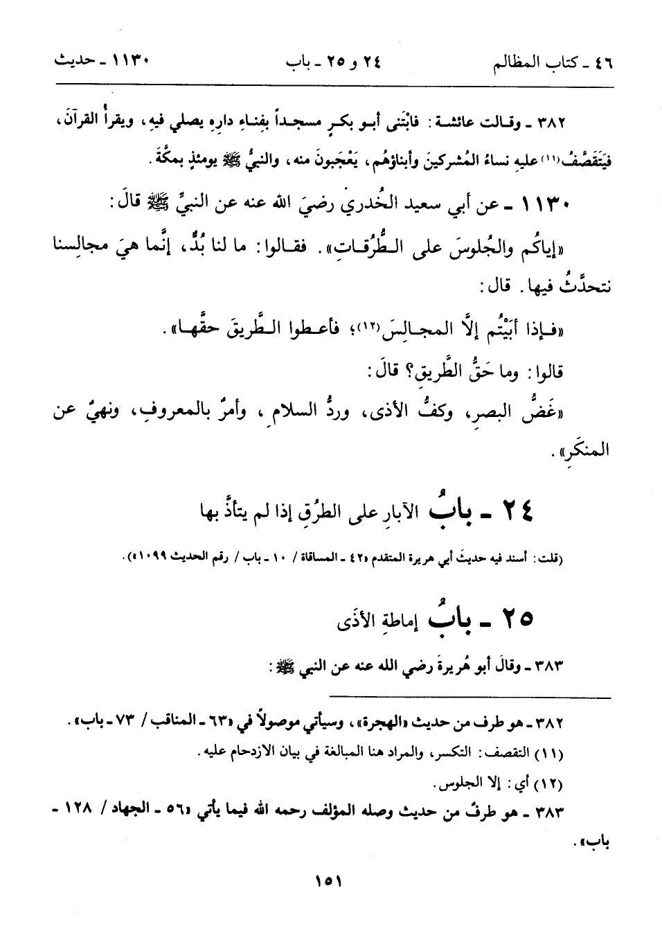 "فإذا أبَيْتُم إلاَّ المجالِسَ (12)؛ فأعطوا الطَّريقَ حقَّها".