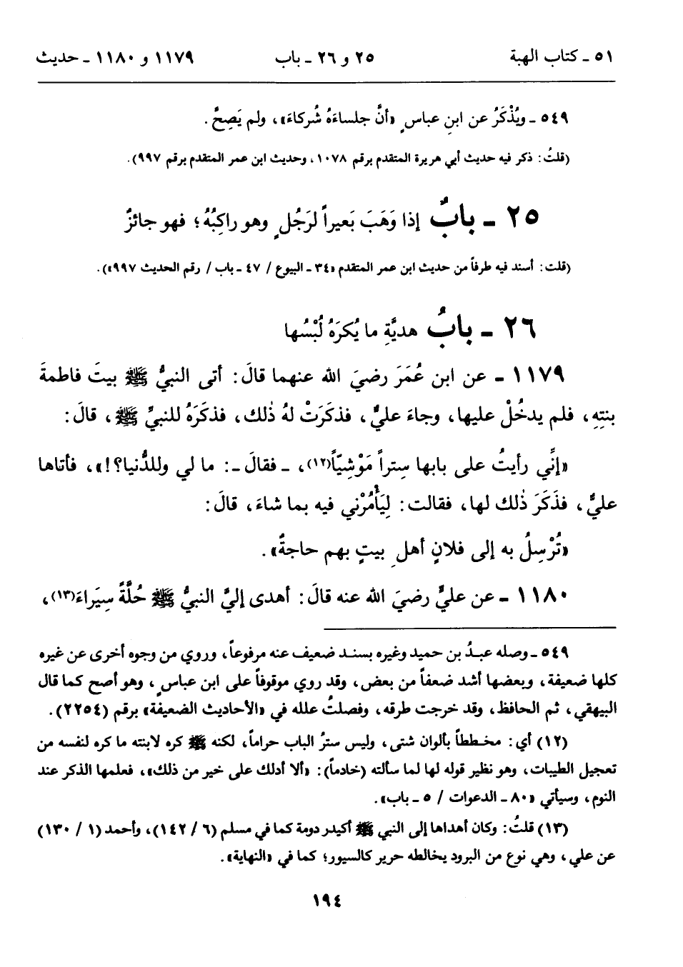 1180 - عن عليٍّ رضيَ الله عنه قالَ: أهدى إليَّ النبيُّ - صلى الله عليه وسلم - حُلَّةً سِيَراءَ (13)،