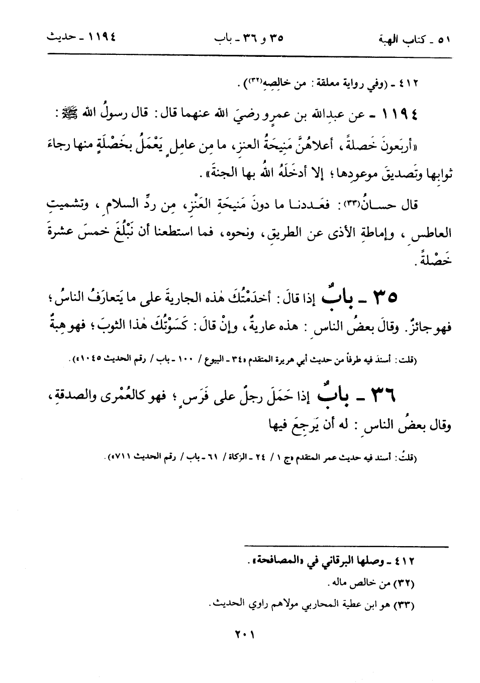 35 - بابٌ إذا قالَ: أخدَمْتُكَ هذه الجاريةَ على ما يَتعارَفُ الناسُ؛ فهو جائزٌ. وقالَ بعضُ الناسِ: هذه عاريةٌ، وإنْ قالَ: كَسَوْتُكَ هذا الثوبَ؛ فهو هِبةٌ (قلت: أسندَ في طرفاً من حديث أبي هريرة المتقدم "34 - البيوع/ 100 - باب/ رقم الحديث 1045 ").