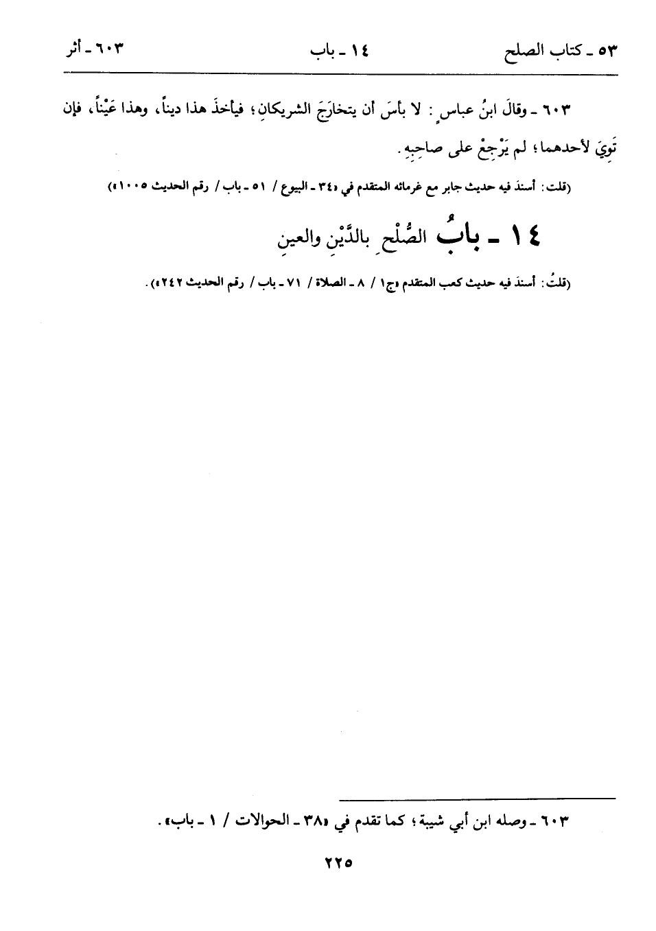 14 - بابُ الصُلْحِ بالديْنِ والعينِ