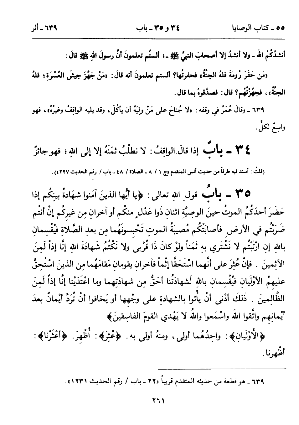 639 - وقالَ عمر في وقفه: "لا جُناحَ على مَنْ ولِيَة أن يأكلَ، وقد يليه الواقِفُ وغيرة"، فهو واسِعَ لكل.