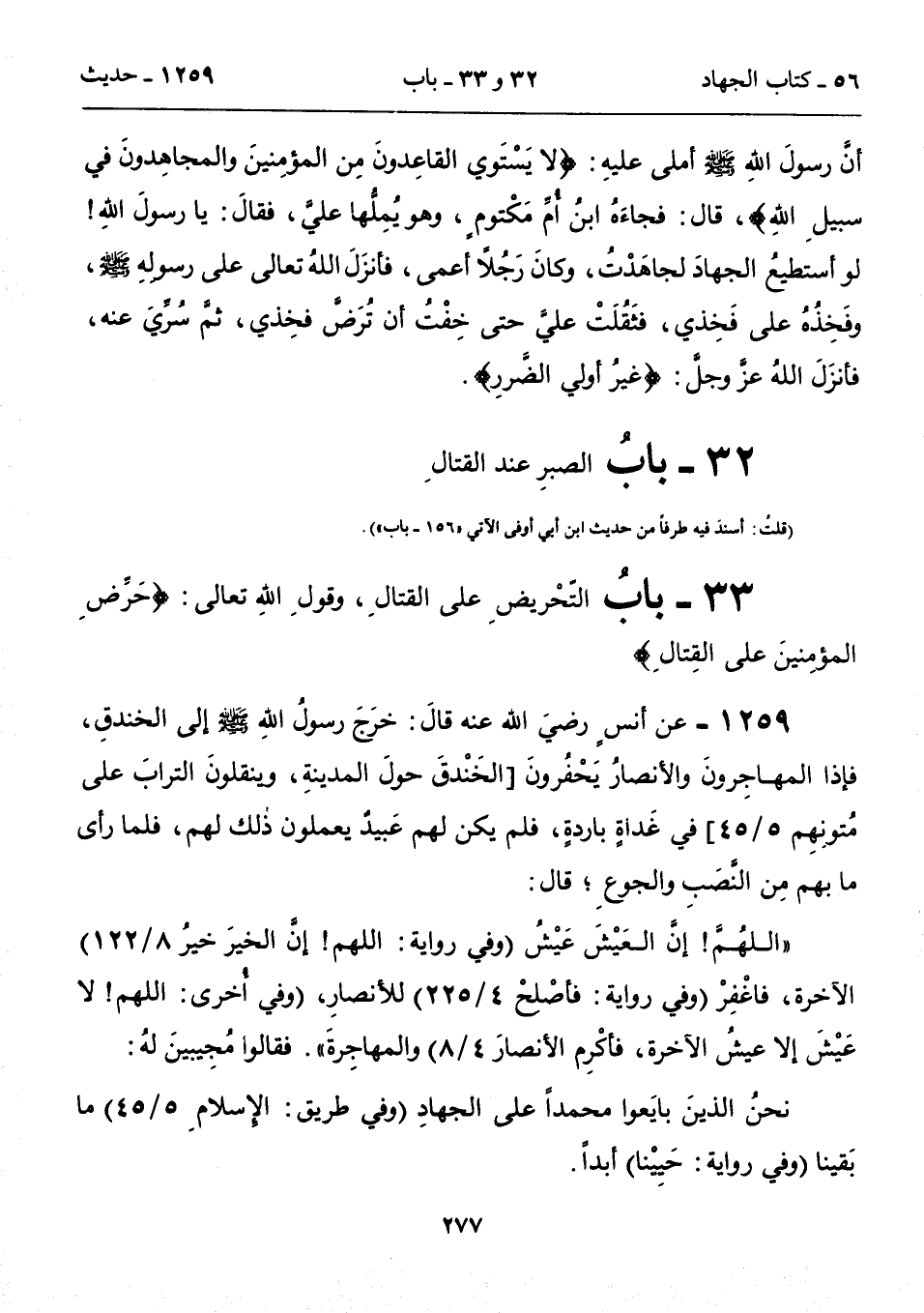 33 - بابُ التَحْريضِ على القتال، وقولِ اللهِ تعالى: {حَرِّضِ الْمُؤْمِنِينَ عَلَى الْقِتَالِ}
